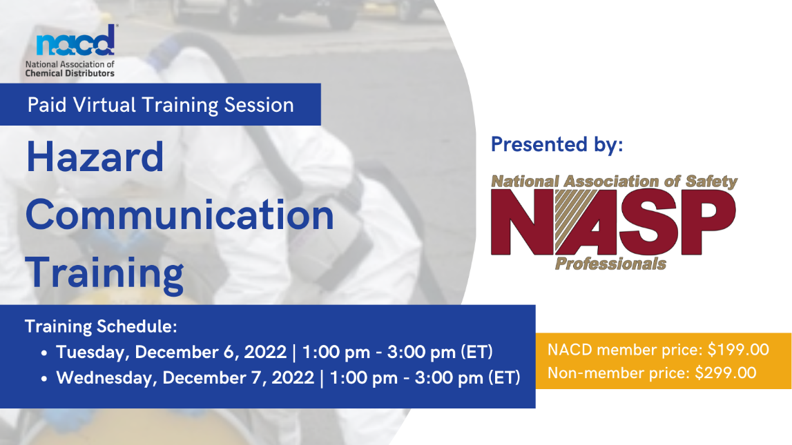 NASP has partnered with the National Association of Chemical Distributors (NACD) to offer a 4 hour (0.4 CEU) live-stream online course to discuss the intricacies of the Hazard Communication Standard.