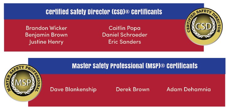 To the newly certified Master Safety Professionals and Certified Safety Directors, we commend you for your outstanding accomplishment and applaud your dedication to advancing the safety field.