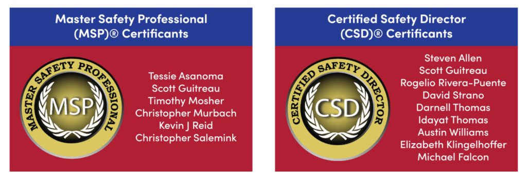NASP would like to congratulate the safety professionals who have recently earned their Master Safety Professional (MSP)® and Certified Safety Director (CSD)® certifications.