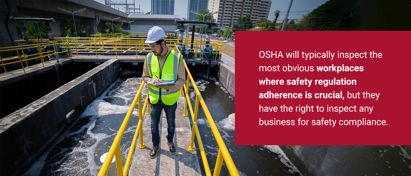 Since all businesses must report serious injuries and fatalities to OSHA, OSHA knows which industries put employees at the most risk. Construction workers are a good example of a high-risk job, with one in five worker deaths occurring in the construction industry in 2019. Thus, construction worksites are a likely candidate for an OSHA inspection.