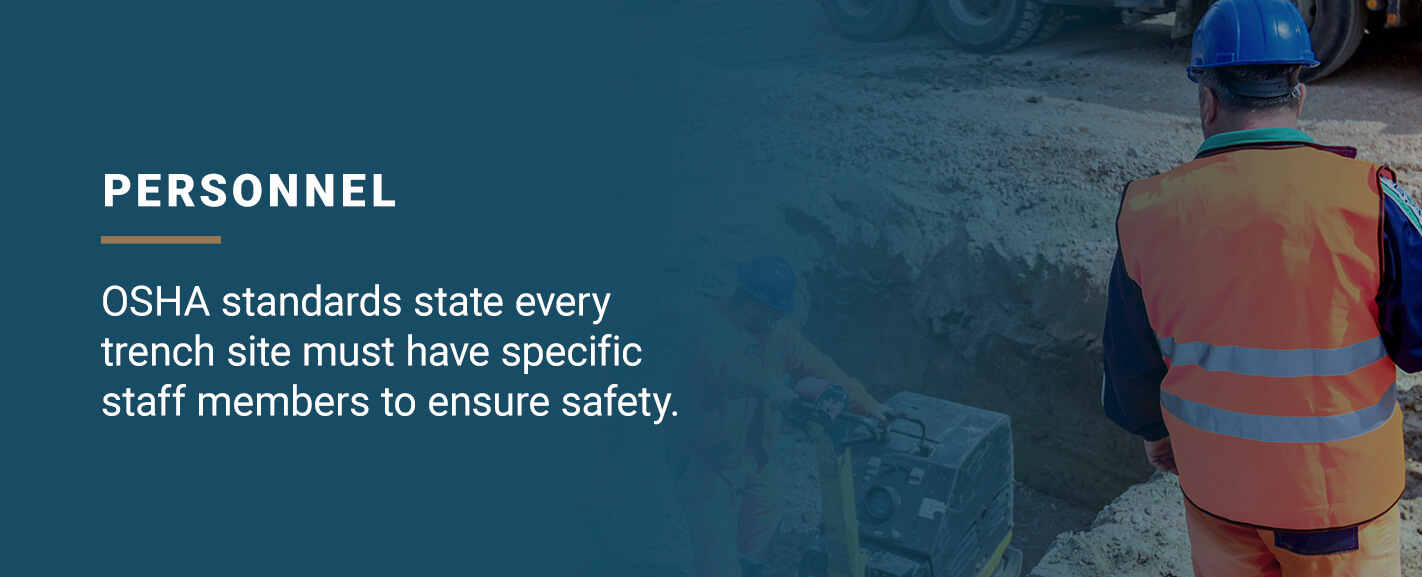 OSHA standards state every trench site must have specific staff members to ensure safety. Each member has a particular role that helps with the well-being of the entire team. When crews follow their responsibilities, they reduce the number of accidents and hazards.